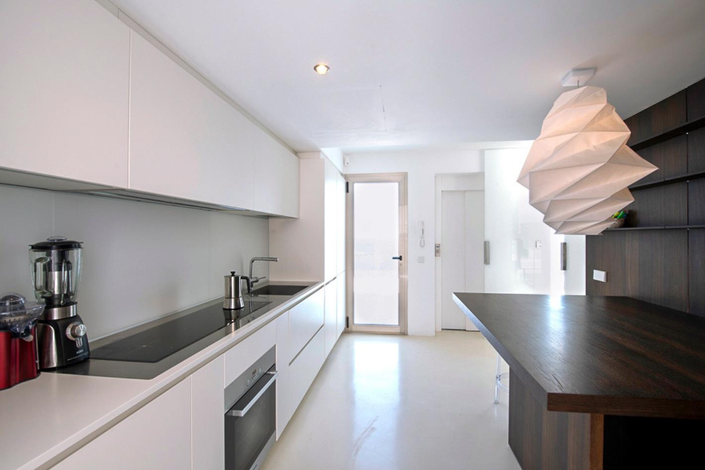 In this is located 1 more room with an en-suite bathroom and a design tub with a small sofa. You go down to this room by a spectacular staircase designed by a renowned architect, a staircase that resembles those of the Guggenheim Museum in New York and ends with a beautiful olive tree. On the other side of the house on this same floor is the staff room, which is a mini apartment since it has a small kitchen with a dishwasher, oven and stove and a small refrigerator.
